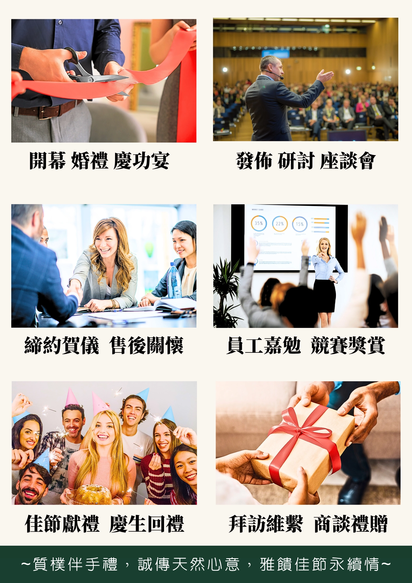 因常懷回饋故里之情,特別深耕台中彰化海線中小企業,滿足開幕誌慶, 佳節獻禮到商務餽贈等場合需求,期望成為在地交流的質樸首選
