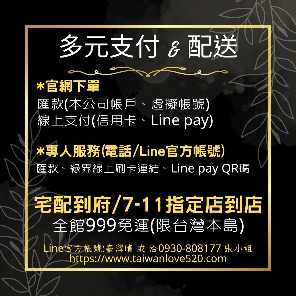 一律「宅配」到您填寫的指定地址◦ 配送過程偶有無法準時送達的情形,宅配人員將以電話先行與您聯繫,敬請見諒;為了保護商品的完整,我們會妥善包裝您所訂購的商品,到貨後請立即開箱檢查錄影存證,確認商品包裝完整無缺。 若超過 7 日仍無法聯絡上,以致商品無法送達,將取消該筆訂單。(為了確實將貨送到您的手上,請務必填寫正確送貨的地點,以便盡速將商品寄送給您)◦ |
