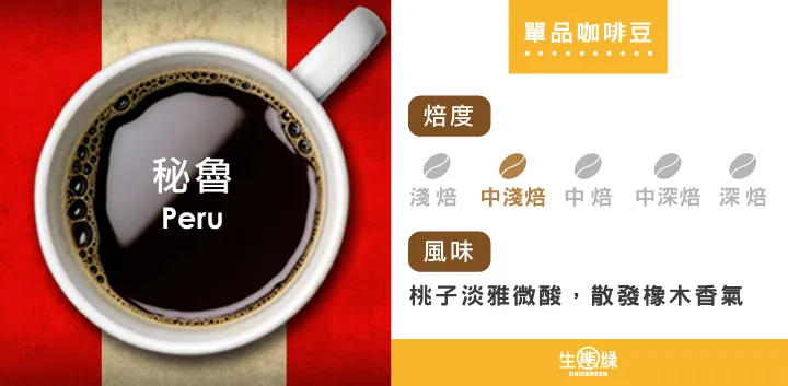秘魯共擁有250,000公頃的咖啡田,主要分布在亞馬遜河叢林一帶,海拔高度介於1,000至2,000公尺之間。得天獨厚的環境,造就秘魯咖啡成為國際咖啡賽事的常勝軍,以高品質與細緻風味受到咖啡迷們的喜愛。