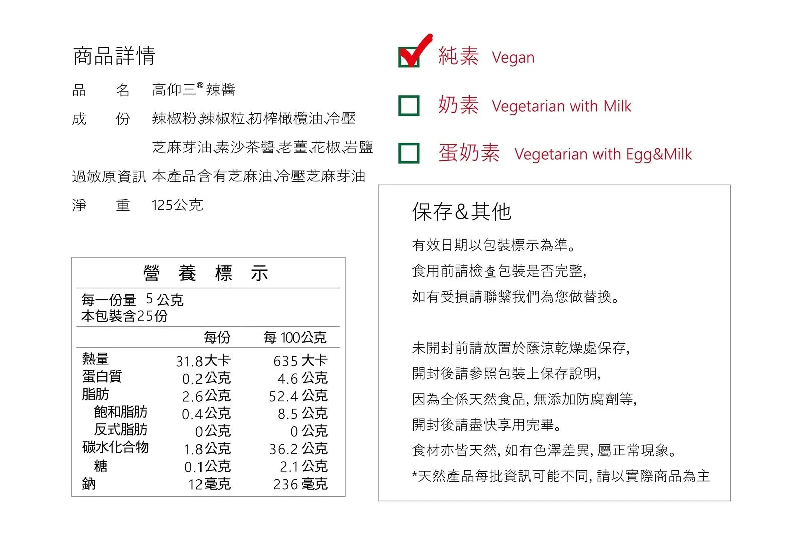 【純素】 125g