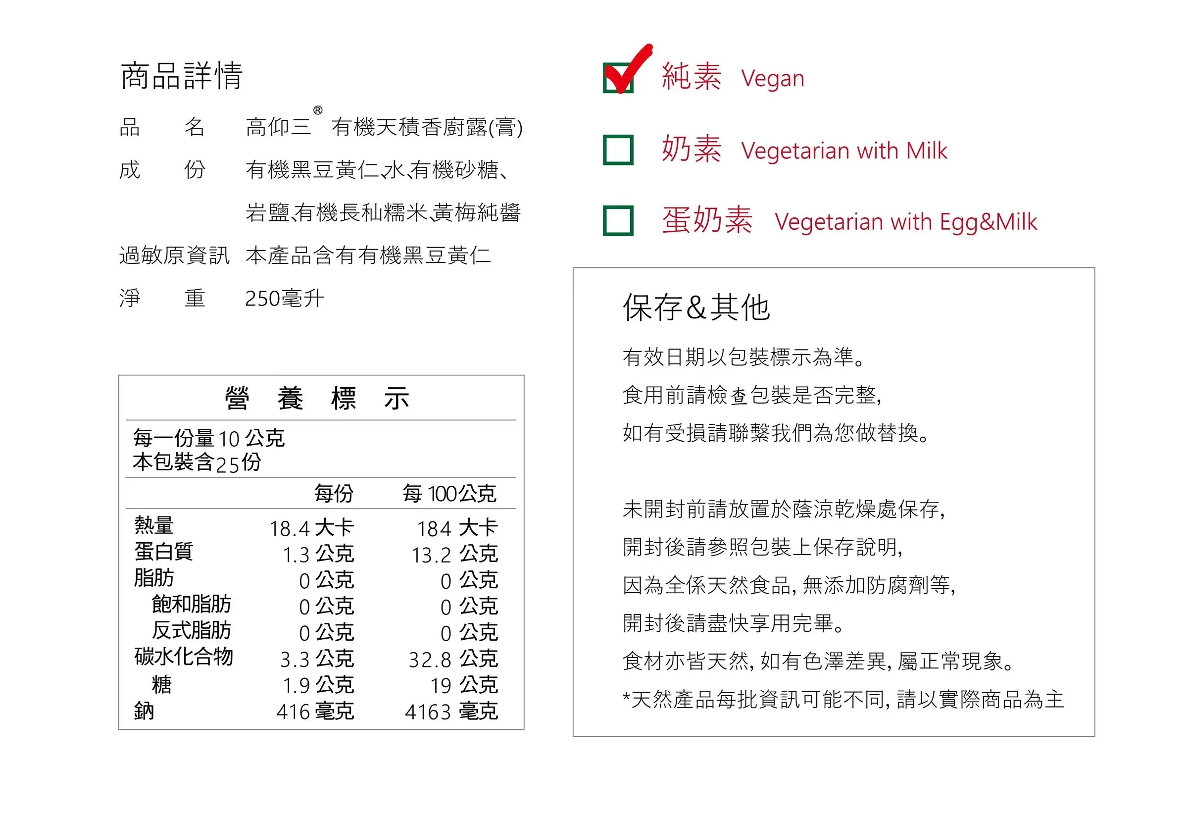 全然無添加人工甘味、焦糖色素、防腐劑...等,