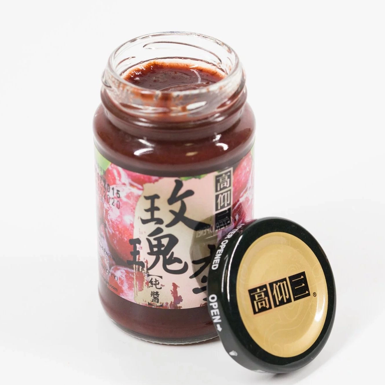 來自台灣中央山脈原生李樹,嚴冬後初夏結飽滿李果。手洗淨,小火熬煮,配天然蔗糖、麥芽糖、蘋果醋、紅紫蘇。琥珀色澤,清爽果香,甜中微酸,適合抹麵包、調沾醬或稀釋飲用,冷熱皆宜。